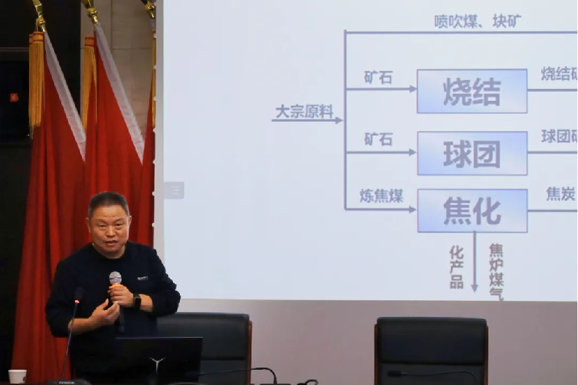 本次培训班的首场培训《钢厂铁前工艺及配煤配矿介绍》邀请到了湘钢原炼铁厂党委书记、资深铁前工艺专家汤乐云老师,他从炼铁生产工艺、配煤配矿简介和原料混匀三个方面,图文并茂、深入浅出,详细讲解了炼铁过程中的主要工艺流程和原料指标、产品性能。